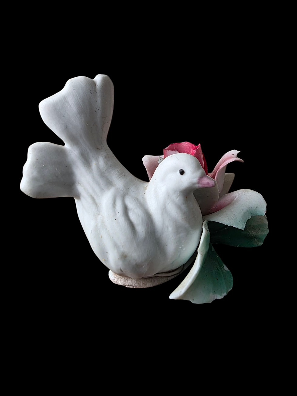 Capodimonte Porcelain Dove with Rose Flower Figurine Italy