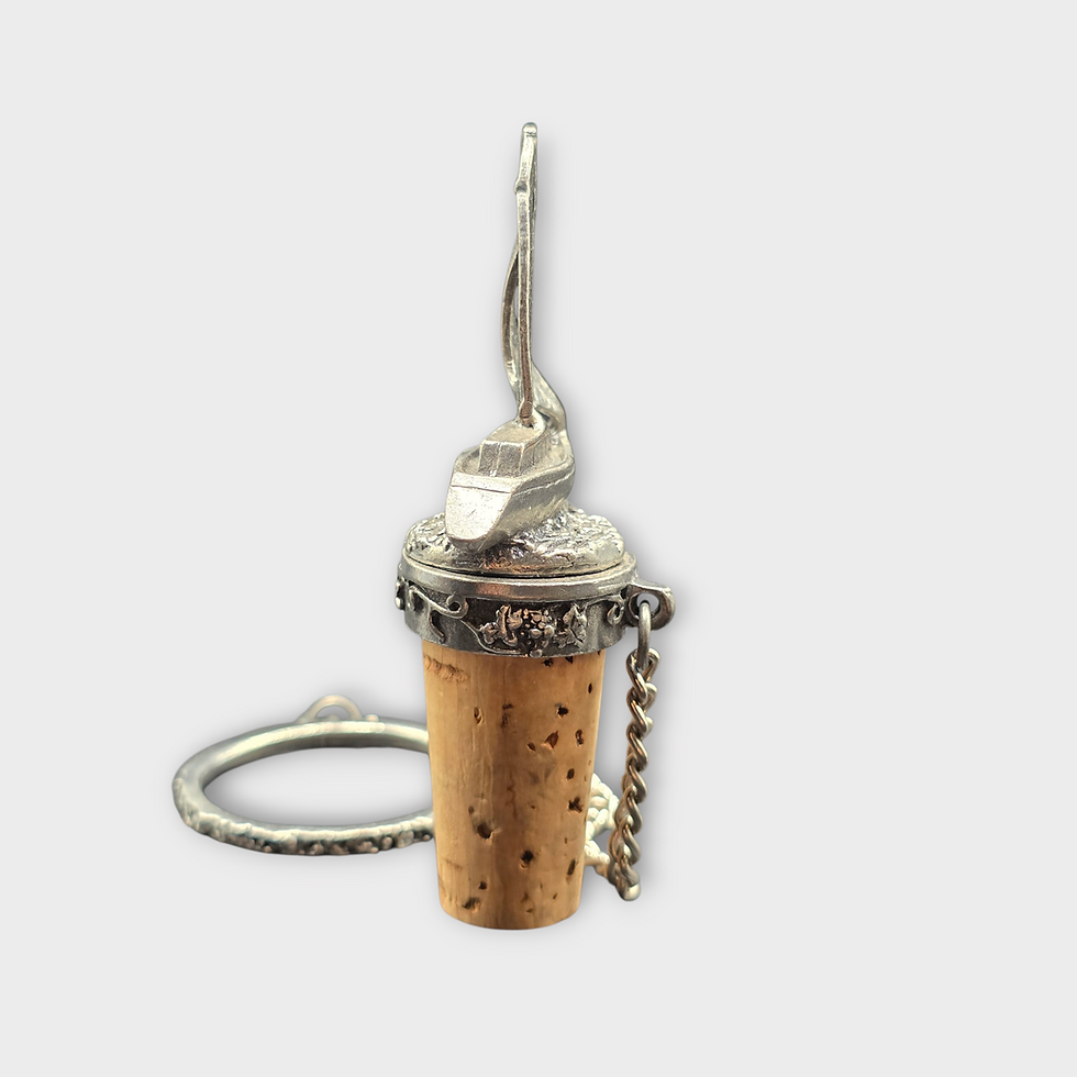 Vintage Pewter Sailboat Bottle Stopper with Chain – Nautical Barware Decor